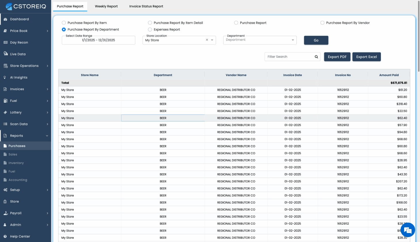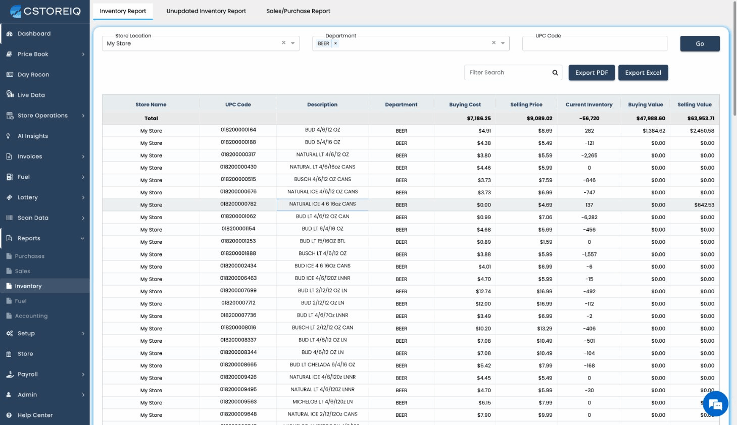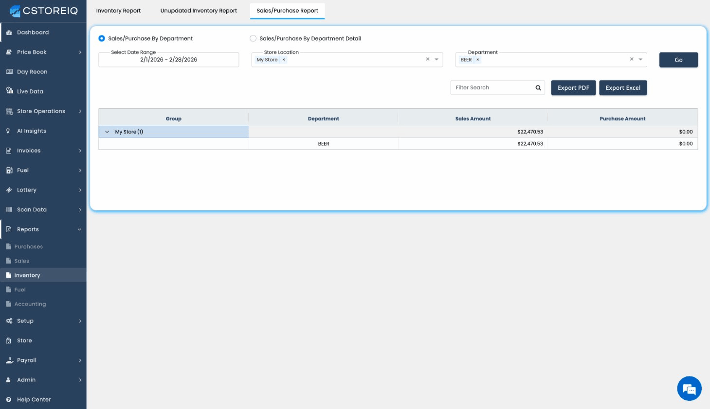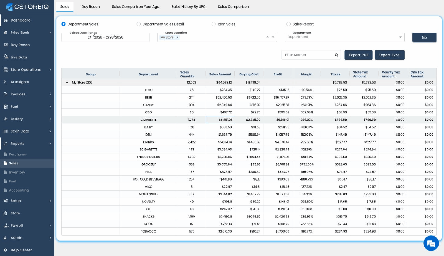 CStoreIQ's Reports module is your central hub for generating detailed financial and operational reports across all your stores. It covers purchases, sales, inventory, fuel, and accounting data, giving you the insights you need to make informed decisions.